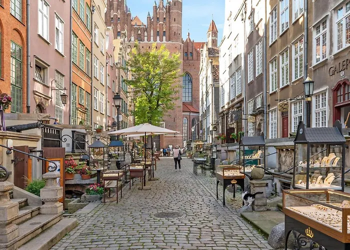 Mariacka Street Charm, Main Old Town By Downtown Apartments Gdańsk ligger i Gdańsks centrum, 600 meter från Gröna porten. Gästerna kan använda Wi Fi och en allmän parkering. Det finns också cykeluthyrning.